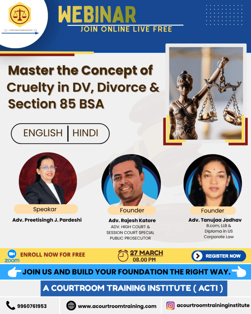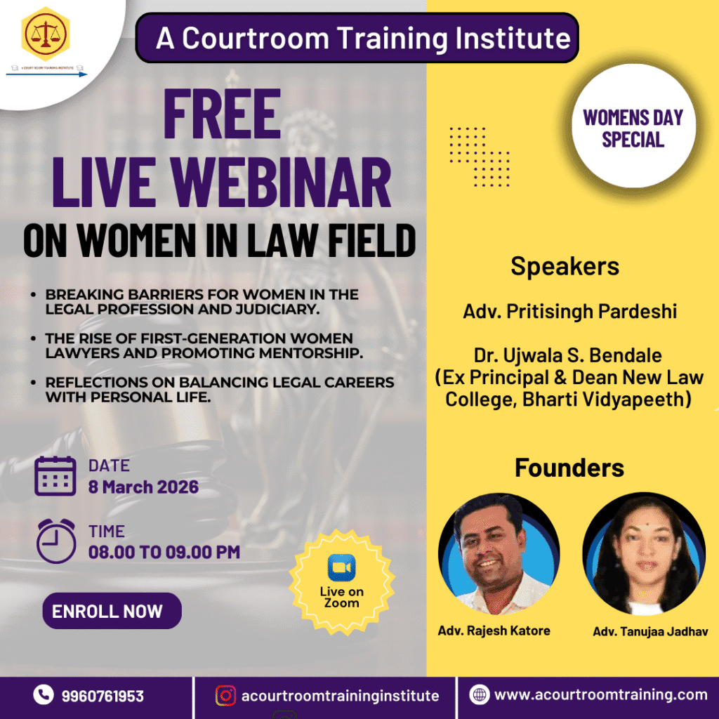A COURTROOM TRAINING INSTITUTE (“ACTI”) is a practical courtroom training institute formed by Adv. Rajesh Katore (High Court & Session Court Practitioner) and Adv. Tanuja Jadhav, Civil Practitioner.